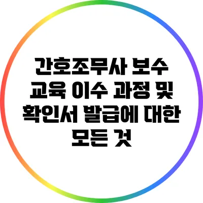 확인서는 간호조무사가 보수 교육을 이수한 후 발급받는 필수 문서에요. 이 문서는 개인의 지속적인 교육 이수를 증명하며, 취업 시에도 유용하게 사용됩니다.