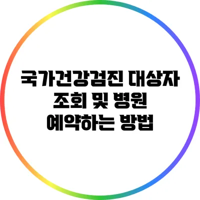 건강은 삶의 가장 중요한 자산 중 하나입니다. 특히, 국가에서 제공하는 건강검진은 건강을 유지하고 질병을 조기에 발견할 수 있는 좋은 방법이에요. 그렇다면 국가건강검진 대상자를 어떻게 조회하고, 병원 예약은 어떻게 하는지 자세히 알아볼까요?