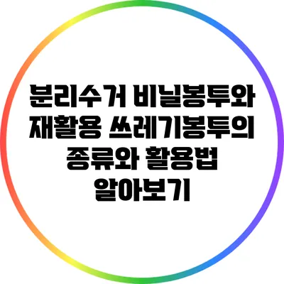 분리수거를 위해 가장 먼저 알아야 할 두 가지 봉투가 바로 비닐봉투와 재활용 쓰레기봉투입니다. 이 두 가지 봉투에는 각각의 용도와 특징이 있습니다.