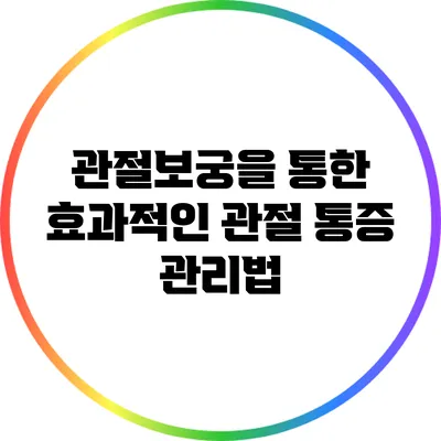관절 통증은 일상에서 매우 흔하게 발생하는 문제이나, 그에 대한 대처 방법은 다양해요. 관절보궁은 특히 자연적인 방법으로 효과를 볼 수 있는 옵션이에요.