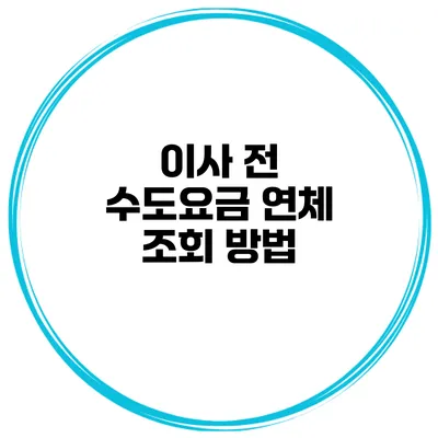 이사 전에 수도요금 연체 여부를 확인하는 것은 원활한 이사를 위해 필수적이에요. 특별히 수도요금이 연체된 경우 즉시 해결하기 위한 조치를 취하는 것이 중요해요.