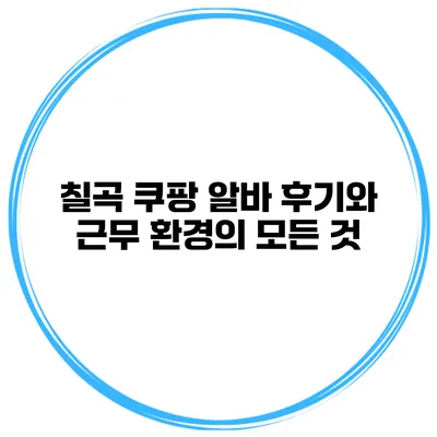 칠곡 쿠팡 알바 후기와 근무 환경의 모든 것
