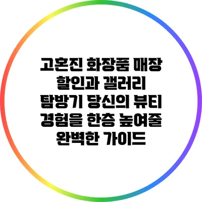 고혼진 화장품 매장 할인과 갤러리 탐방기: 당신의 뷰티 경험을 한층 높여줄 완벽한 가이드 2024년 12월 30일 by Expert Reporter 고혼진 화장품 매장 할인과 갤러리 탐방기: 당신의 뷰티 경험을 한층 높여줄 완벽한 설명서 고혼진 화장품을 찾고 계신가요? 그렇다면 여러분에게 완벽한 … Read more